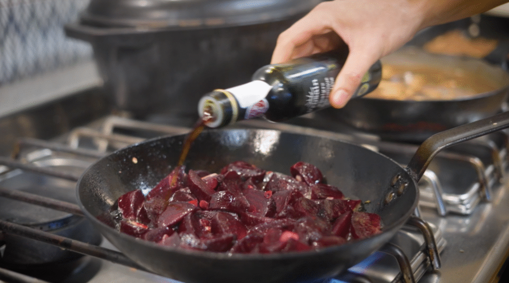 Making The Beetroots Glazed in Balsamic with Pomegranate and Roasted Almond Slivers